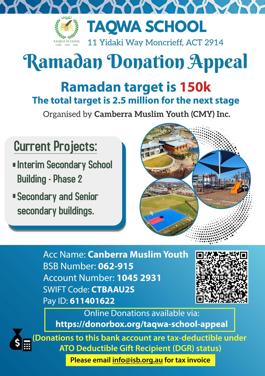 The Taqwa school, Canberra, anticipates accommodating 450 students by 2025, with plans for Year 9 & 10 classes, in-sha Allah.